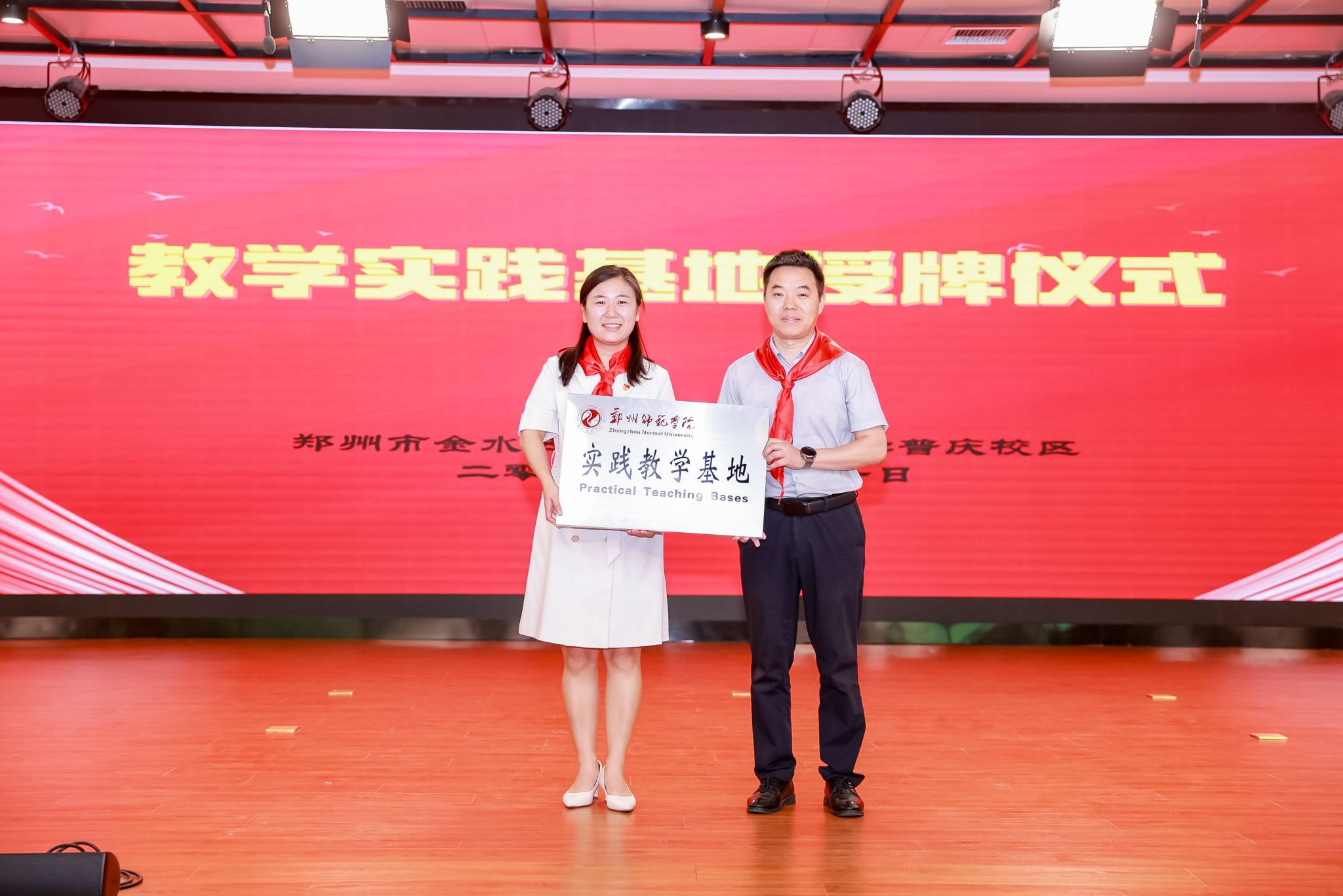 金水区纬五路第一小学普庆校区隶属于金水区纬五路第一小学教育集团。学校位于索凌路、博卉路、普庆路、庙李南路的围合区域,规划占地面积51.5亩,总建筑面积48438.77㎡,将于2022年秋季投入使用,并面向辖区招收一年级新生。学校规划设置60个教学班,拥有一流的硬件设施,规划有多功能教室、图书馆、学生活动室、心理咨询室、德育展示室、风雨操场、学生食堂、报告厅、科学教室、音乐教室、美术教室、计算机教室、劳技室、舞蹈教室、书法教室、语音教室等场馆和专业教室,功能复合、环境优美的现代化园林学校。该实践教学基地为我院毕业生提供了良好的实践教学平台,双方表示将充分利用这一合作平台,不断拓展合作领域,创新合作模式,并就未来的深度合作达成共识。