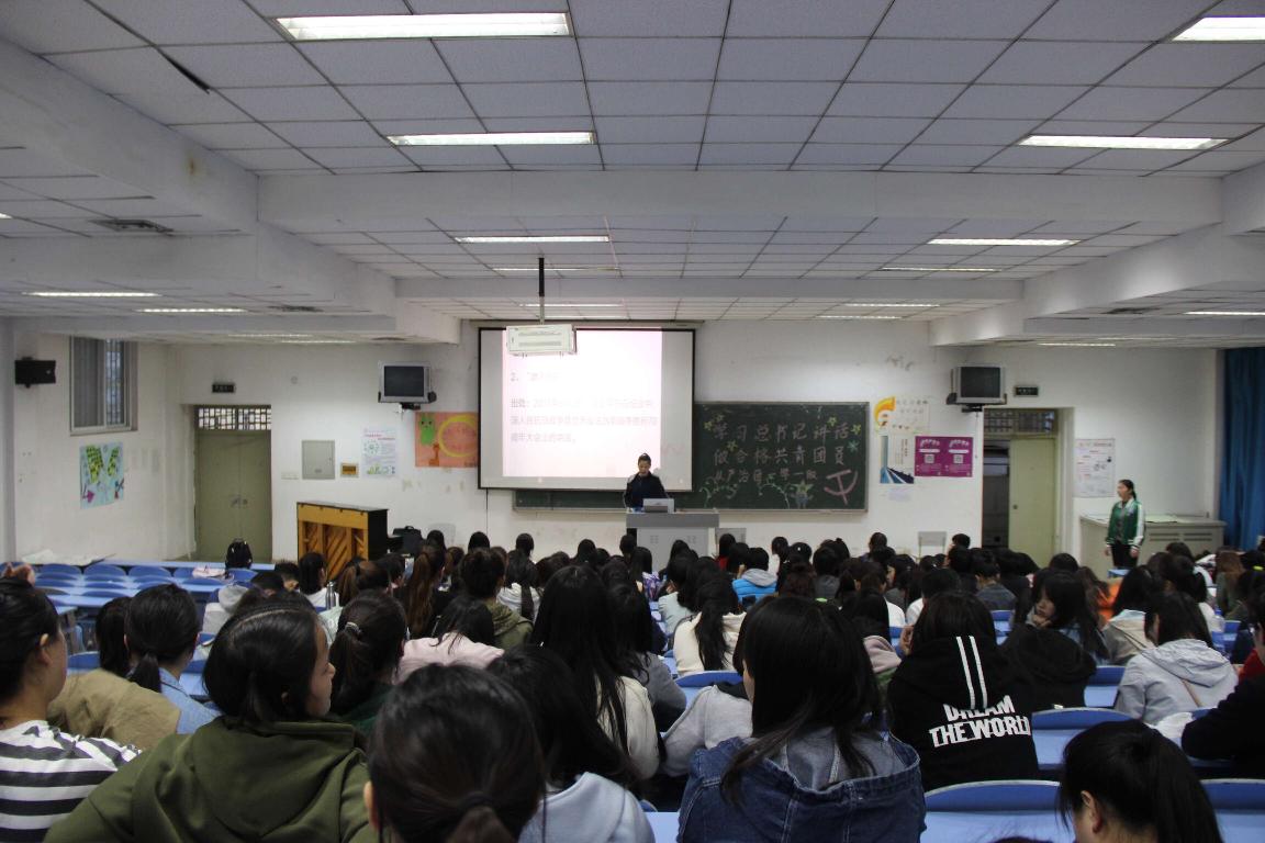 2017年4月12日下午7点,教育科学学院于西校区一阶二教室开展了以“学习总书记讲话,做合格共青团员”为主题的政治学习会议。本次会议由B16学前1班团支书李唯一同学主讲,学生会推优部出席维持班会纪律,16级全体学生积极踊跃参加本次会议。