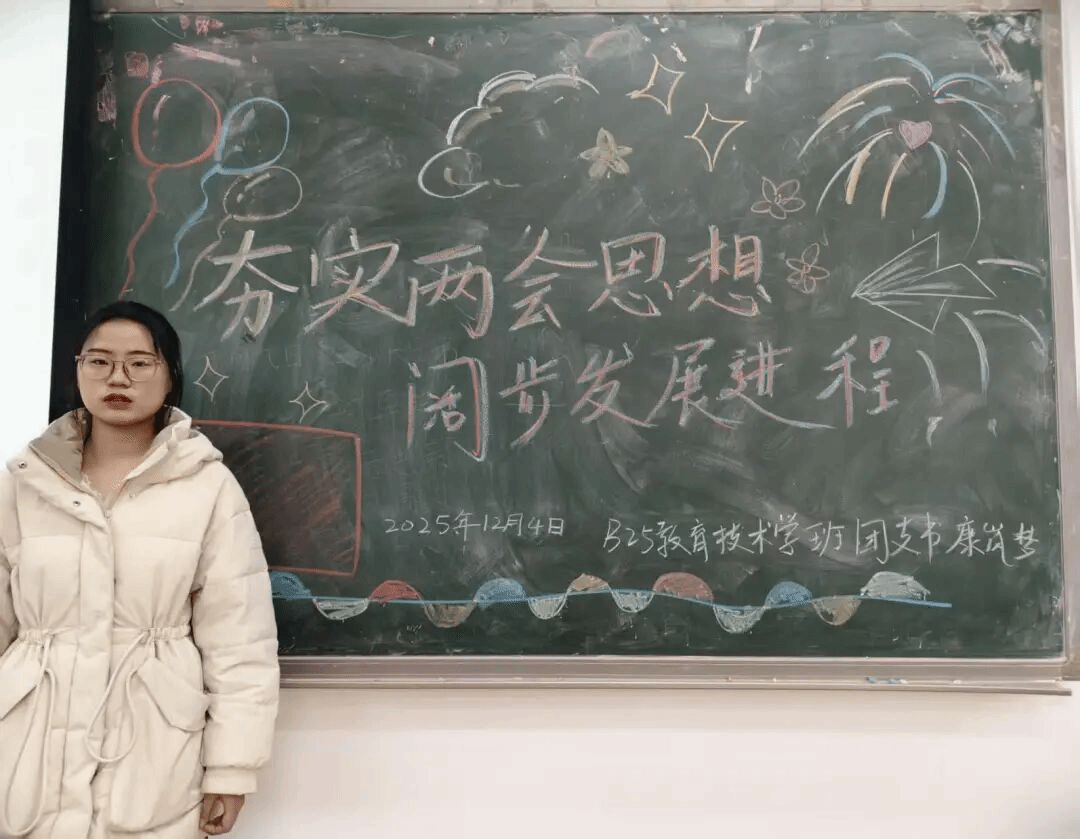 为夯实两会思想,号召青年勇担时代使命。我院学生会学习发展部于2025年12月4日于西校区一阶二教室开展了“夯实两会思想,阔步发展进程”为主题政治学习会议。本次由B25教育技术学班团支书康岚梦主讲,我院25级全体学生参与其中。