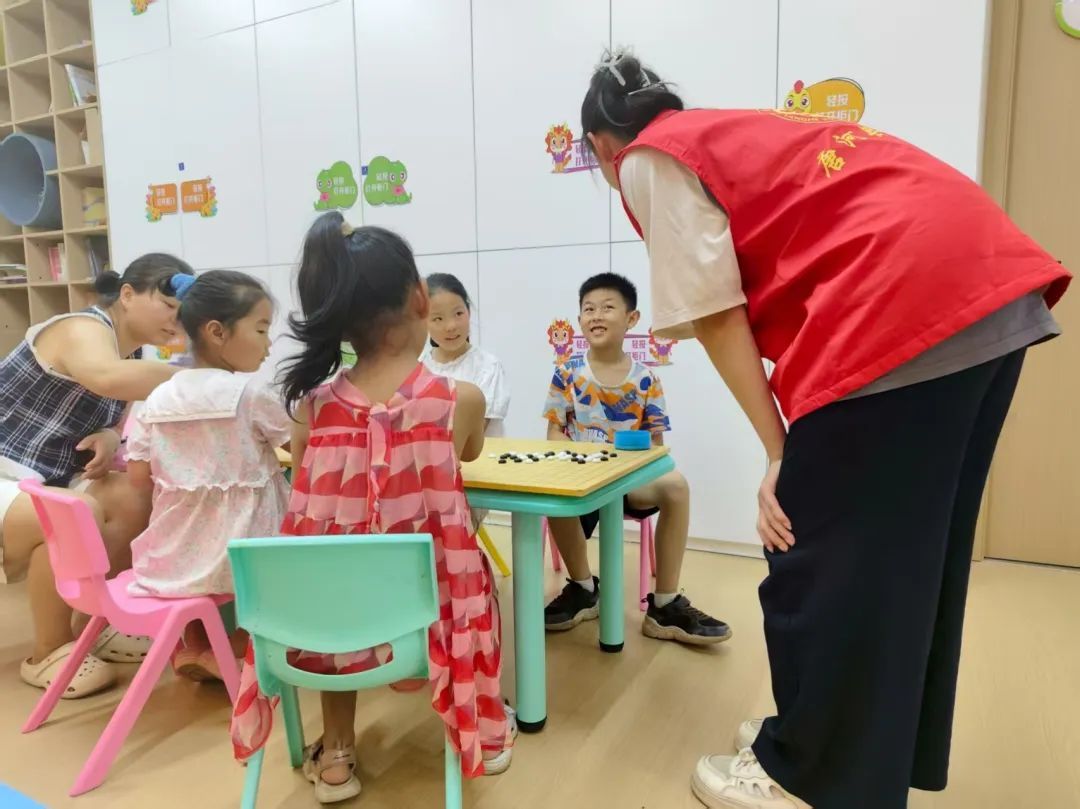 活动中的工作内容十分多样。在阅览室,我们会及时整理孩子们读完的书籍,将它们放回正确的位置,确保图书角的整洁有序;在手工室,我和孩子们一起折纸、捏粘土、画画、摆弄扭扭棒,享受动手创作的快乐;在科技馆,我体验了AI虚拟沉浸技术带来的奇妙感受;在玩具区,我陪着孩子们下五子棋、象棋,玩跳跳棋,度过一段段轻松愉快的时光。有时到了下午,还能和家长、孩子们一同观看电影,共享温馨的亲子时刻。