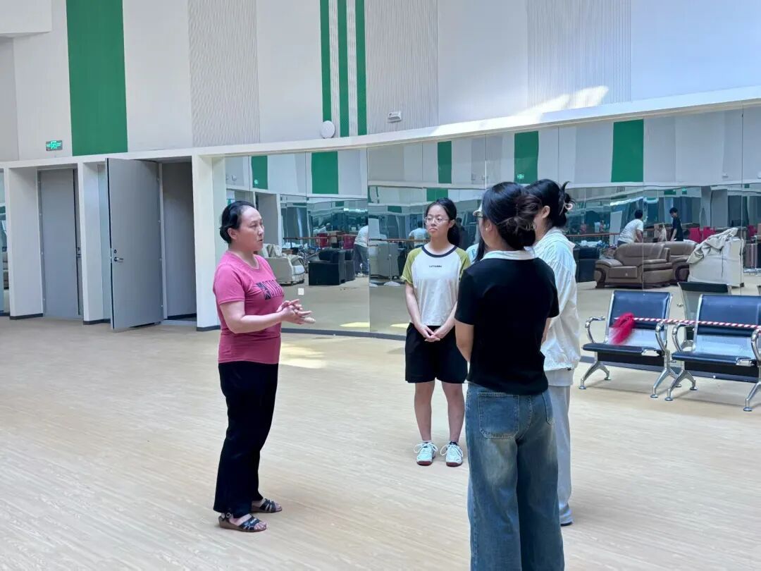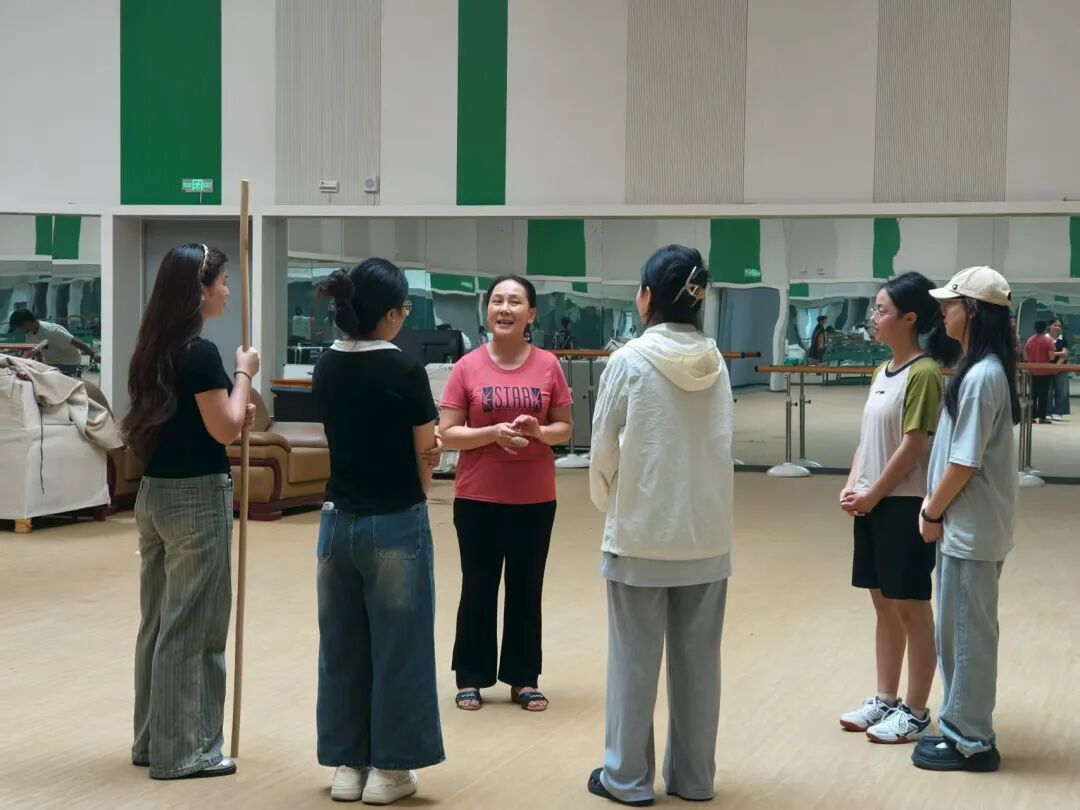 交流中,“00后”传承人的身影格外亮眼,在练习传统技法的同时,也尝试给花鼓戏注入新元素。队员们也跟着他们学了一段耍棍技法,虽只是简单的转棍、挑棍,却真切体会到“台上一分钟,台下十年功”的分量,也感受到年轻传承人身上“守正创新”的活力。花鼓戏的传承,从来不是孤立的“保护”,而是像一场接力——老一辈把技艺与故事传下来,年轻一代再带着它跑向新的人群。