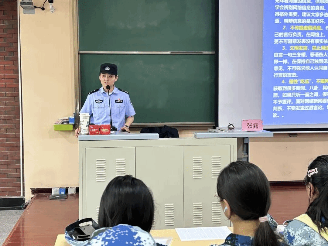 为筑牢新生安全防线,将反诈防骗作为入学教育的重要一环,我院于9月11日上午9:50在文汇楼A501教室,举办了“诈骗请远离,青春我做主”反诈知识专题讲座。本次活动特邀迎宾路派出所张露警官主讲,2025级全体新生参与其中。