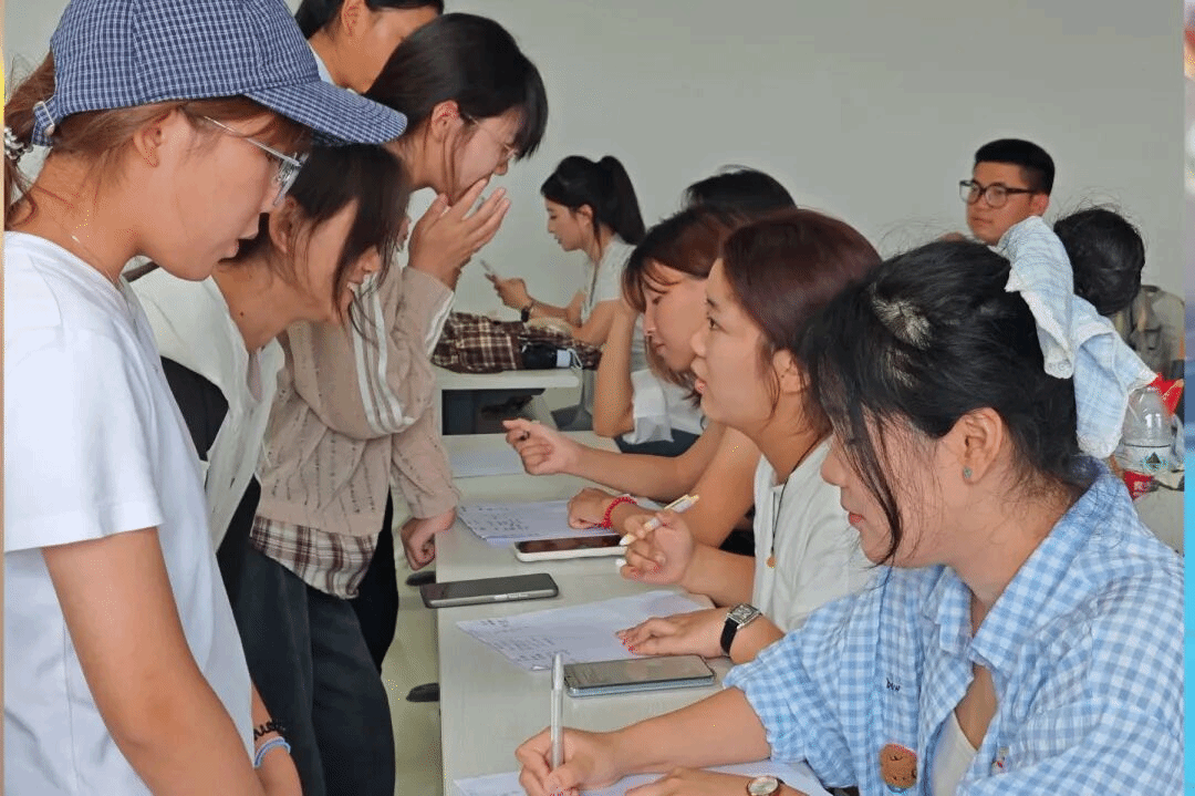 部门介绍环节结束后,招新面试正式展开。各部门在指定区域分别设立面试点,新生们根据自身兴趣与特长选择心仪的部门参与面试。面试过程中,同学们积极表达加入学生会的意愿,展现个人能力与热情,各部门负责人也认真倾听、提问,全面考察申请者的综合素质。现场气氛热烈而有序,展现了教科院学子积极向上的精神风貌。