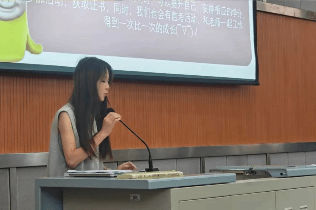 此次招新活动在有序的组织中拉开帷幕。首先,学生会主席团代表在开场发言中表示,学生会不仅是师生之间重要的沟通纽带,协助学院开展各项工作,更致力于通过组织高品质、多元化的校园活动,帮助每一位同学在参与中找到兴趣、在体验中收获成长。随后,各部门负责人轮番登台,结合PPT、视频等多种形式,生动推介了本部门的特色活动与新学年的活动规划,各部门的活动设计涵盖学术、文艺、体育、公益、生活、心理等诸多领域,充分彰显了学生会力求满足同学多元需求、全面丰富大家校园生活的决心。