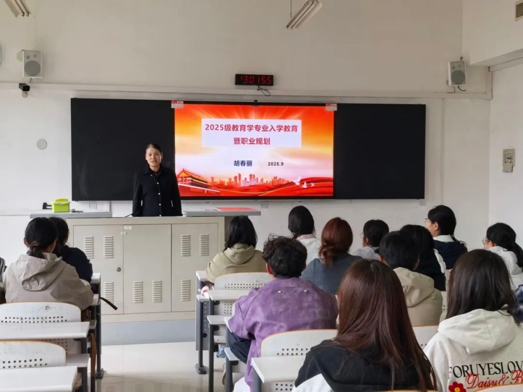 为帮助教育学专业25级新生快速融入大学生活、建立专业认知并明确学业规范,9月22日13:00,我院教育学系主任胡春丽老师在文汇楼A310教室,面向25级新生开展教育学专业入学教育。