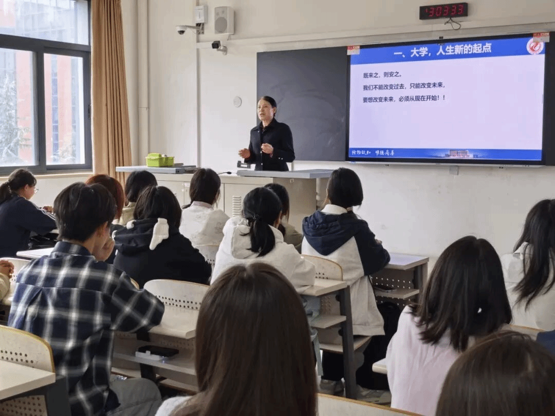 首先,胡老师阐述了大学作为人生新起点的重要意义,鼓励同学们把握大学时光,实现自我成长与价值提升。她强调,大学阶段是个人成长的关键时期,希望新生能够尽快完成角色转变,树立新的学习目标。然后,胡老师详细介绍了教育学专业的学科特点和发展前景。她系统讲解了教育学原理、教育心理学、课程与教学论等核心课程设置,说明了专业的培养目标和人才要求。在职业规划方面,胡老师通过具体案例,分析了中小学教师、教育科研人员、教育行政管理人员、教育培训师等多个发展方向,建议同学们根据自身特点尽早明确目标,制定个性化的学习计划。最后,胡老师重点讲解了学校的学习要求与规章制度,详细说明了课程成绩评定方式、补考与重修的具体规定以及学业预警等相关制度。她特别强调了学习纪律的重要性,提醒同学们要严格遵守校纪校规,重视学习过程。