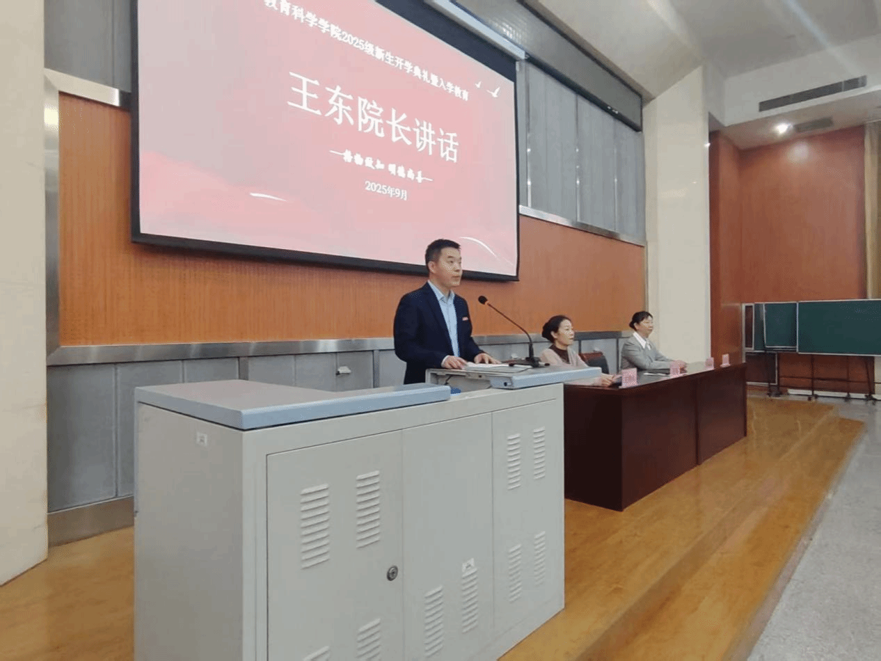 金秋送爽,丹桂飘香。9月23日下午14:00,教育科学学院2025级新生入学典礼暨入学教育于文汇楼A301报告厅隆重举行。出席本次典礼的有学院领导、各系主任、辅导员、2025级德育导师及全体新生。此次典礼由团总支书记张雯老师主持。