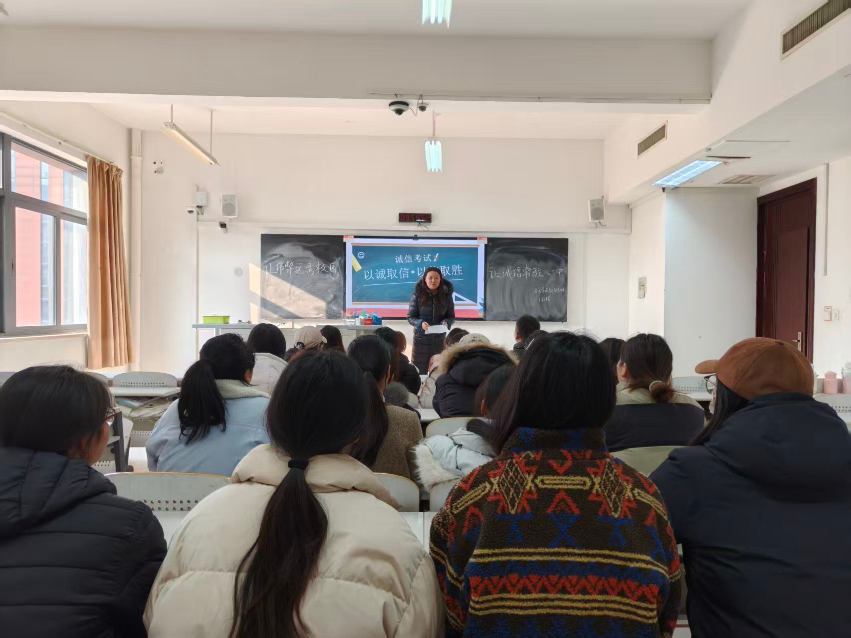 本次班会上,各班德育导师围绕诚信考试主题,设计了丰富多样的教育环节。在主题讲解环节,德育导师们结合《郑州师范学院考场纪律》和《郑州师范学院学生违纪处分办法》,逐条解读考场规则与作弊行为的处罚细则,明确了抄袭、传递答案、携带通讯工具等违规行为的认定标准及相应后果。同时,分析作弊行为对个人学业档案、升学就业的负面影响,让学生直观认识到诚信的重要性。此外,各班还组织了“诚信考试我承诺”演讲等互动活动,学生们主动分享备考计划,互相交流高效复习方法,纷纷表示将以诚信为本,杜绝考试作弊行为。班会最后,全体学生在《诚信考试承诺书》上郑重签字,将诚信考试的理念内化于心、外化于行。
