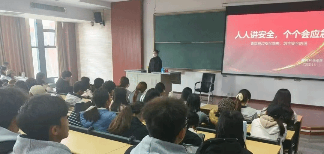 为深入学习贯彻习近平总书记关于安全生产的重要指示精神,推动理论入脑入心,强化思想引领,筑牢安全发展根基,我院学生会组织创新部于2025年11月11日在文汇楼D431教室举办“人人讲安全,个个会应急”安全讲座活动。