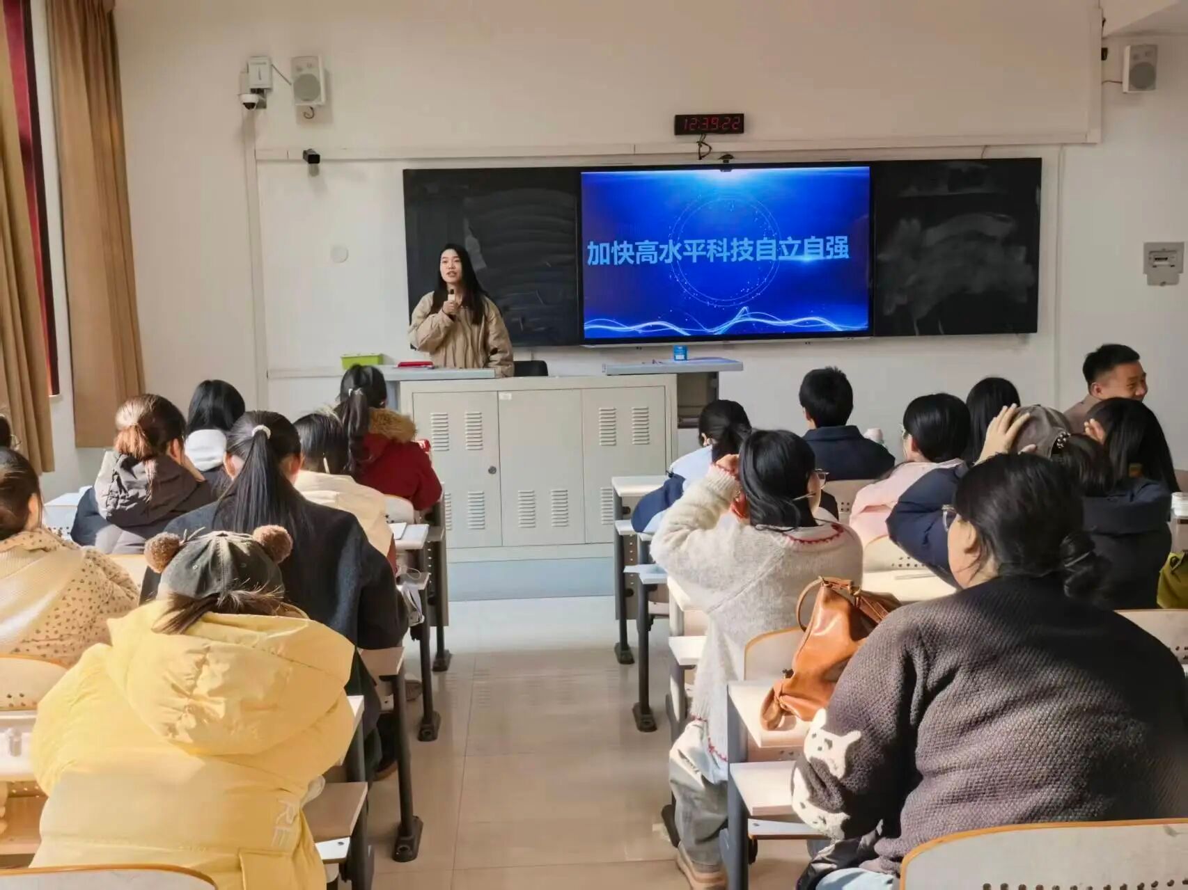 为引导青年学子深刻把握高水平科技自立自强的战略定位,厚植科技报国的使命情怀,我院青马班于2025年12月11日在东校区文汇楼A104教室开展“加快高水平科技自立自强”主题课程。本次课程特邀马克思主义学院吴丽娟老师主讲,我院青马班全体成员参与其中。