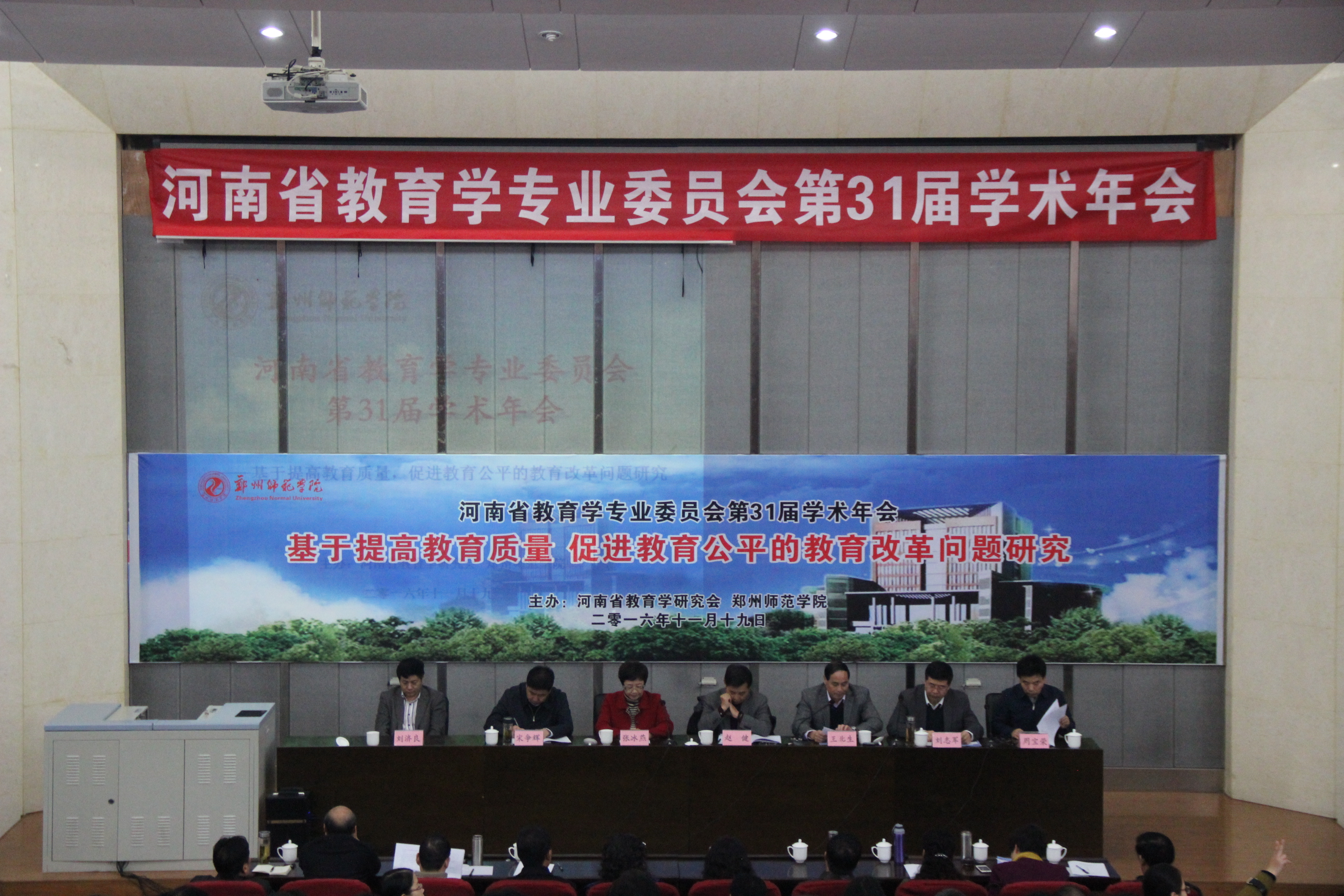 2016年11月19-20日,河南省教育学专业委员会第31届学术年会在郑州师范学院召开。本次会议由河南省教育学专业委员会与郑州师范学院共同主办,由我院承办。会议的主题是“基于提高教育质量,促进教育公平的教育改革问题研究”。河南省教育厅师范处处长张冰燕、郑州师范学院校长赵健、原副校长、河南省教育学会理事长王北生、副校长蒋丽珠、刘济良及来自全省各兄弟院校的专家、学者、教师、学生共230余人出席了本次会议。