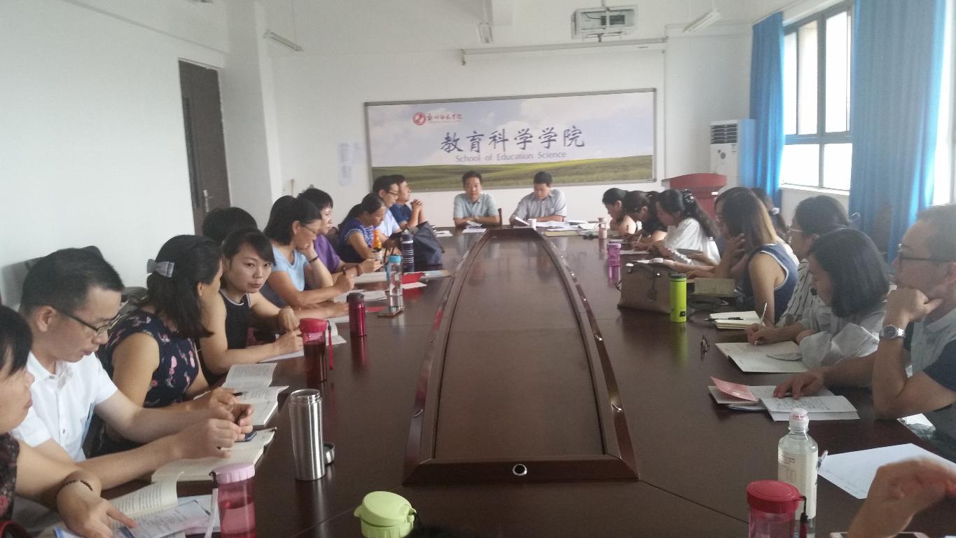 2016年9月4日上午9点,我院在特教楼508会议室召开2016-2017学年度第一学期开学工作会议。会议由党总支书记乔春平主持,院长陈国维、副院长贺常平及教科院全体教师参加会议。