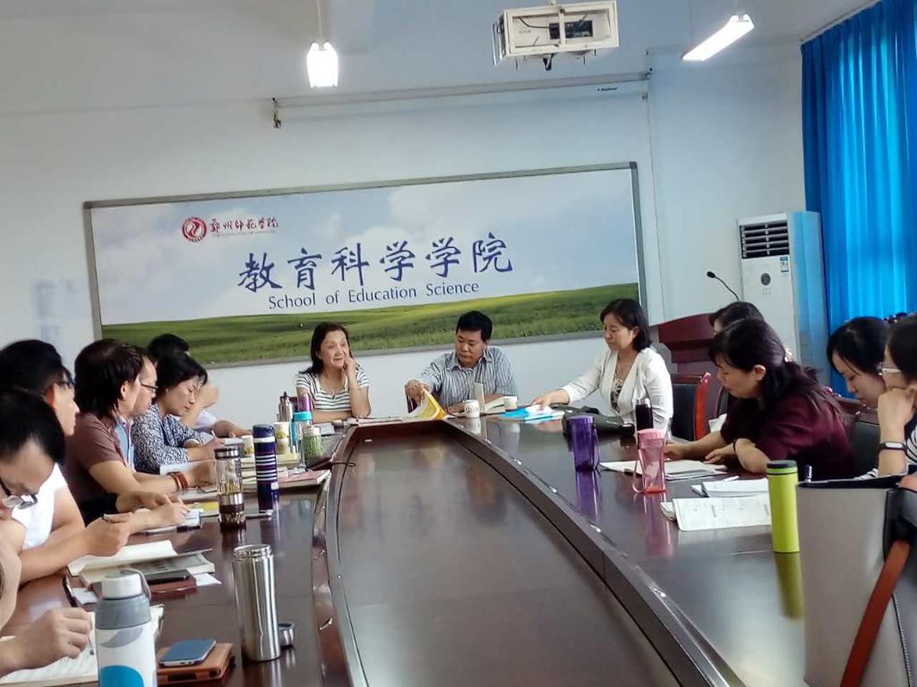 2016年9月20日下午,学校教学督导组来我院督导调研。调研采取集中座谈、分组讨论和代表发言等形式。参与这次教研活动的有校督导组张梦、杨振生等成员,以及教育科学学院全体教师。