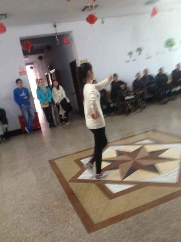 活动中,不断有孩子热情的打招呼“姐姐好,哥哥好”。随后爱心社成员在活动室给孩子们表演了《小画家》、《我的小小手》、《小苹果》等舞蹈,演唱了《暖暖》、《在太行山上》等歌曲,还有成员为老人们唱了京剧,那些老人都竖起大拇指为我们点赞。