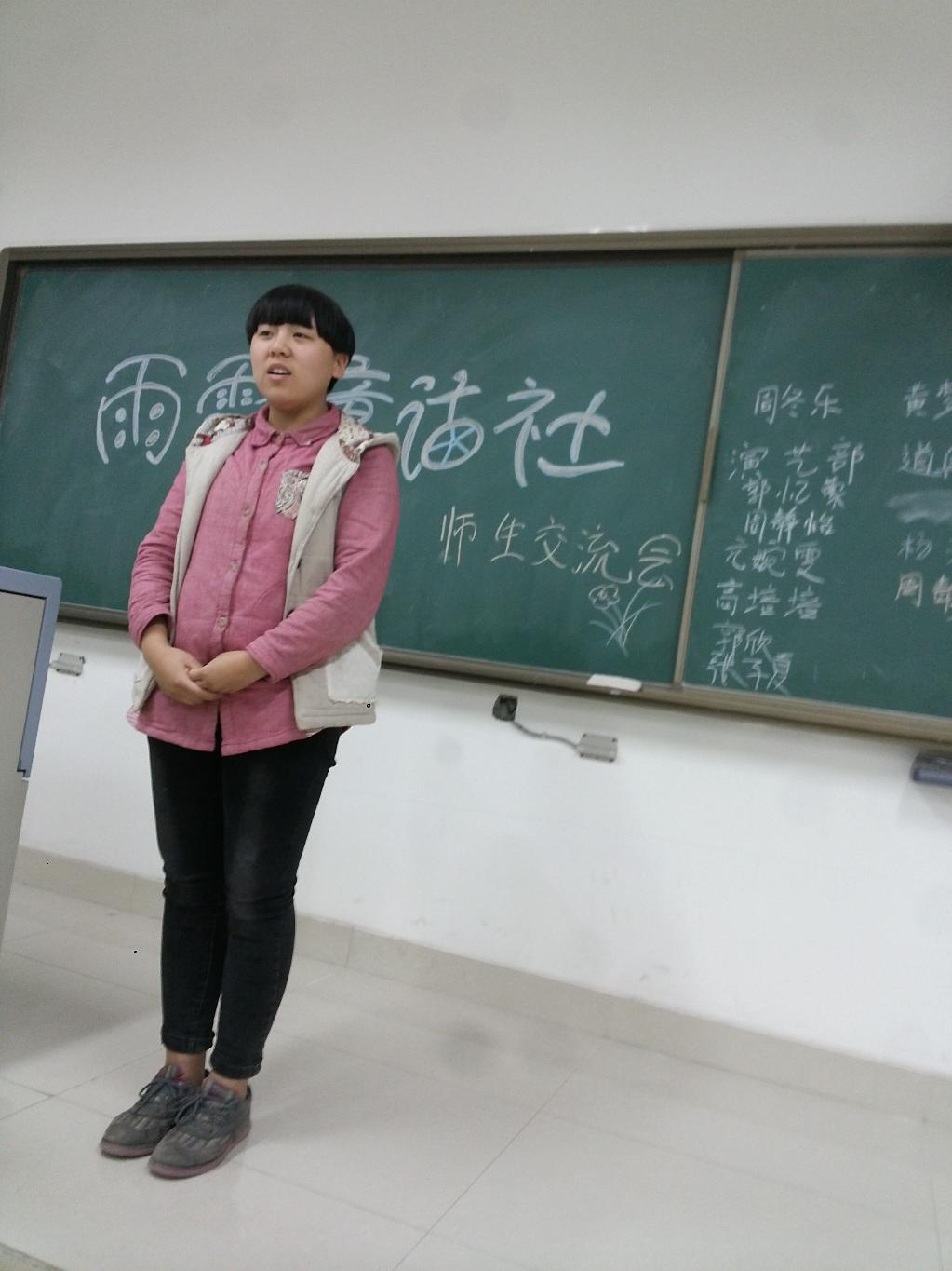 为了加强师生之间的沟通,增强社团内部凝聚力,促进社团更好更快的发展,提高学生沟通和表达能力,雨露童话社于2014年11月20号在新校区综合楼C222举行了师生交流会。