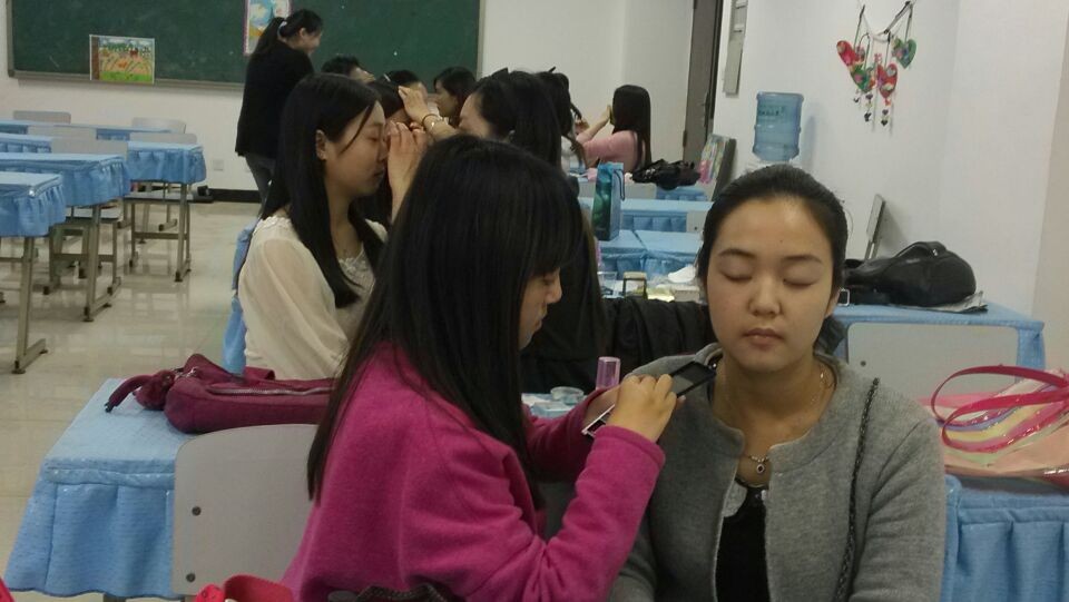 2014年4月3日18点,我院于西校区特教楼508教室举办化妆大赛决赛。我院办公室主任杨文真,技训部部长曹媛媛,礼仪部黄金梦,文艺部部长宋欣及副部长朱雪担任了此次决赛的评委。而从初赛中崭露头角的八组选手再一次展开了激烈的竞争。