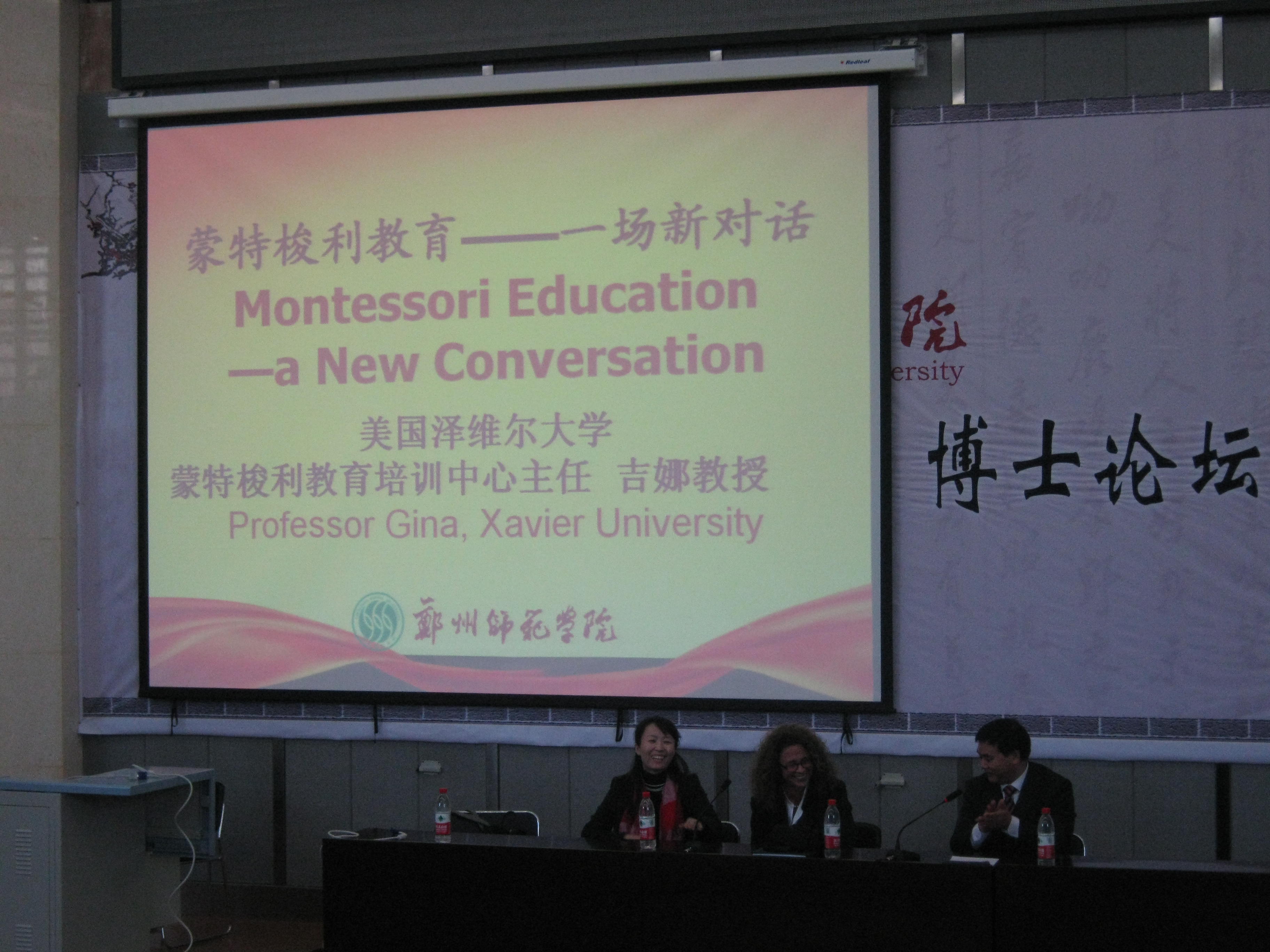 11月13日上午9点,美国泽维尔大学蒙特梭利教育培训中心主任吉娜教授应邀在我校学术报告厅作了题为《蒙特梭利教育——一场新对话》的专题报告。教育科学学院院长陈国维、国际交流与合作处副处长陈新及我院学前教育专业部分师生到场聆听了报告。